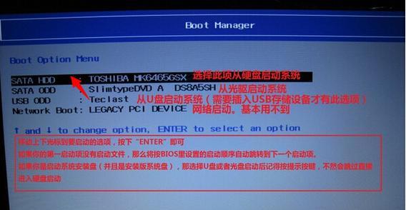 将制作好的启动U盘插入电脑,并根据电脑型号不同,进入相应的BIOS设置界面。在BIOS设置中,将启动方式调整为U盘启动,并将U盘设置为第一启动项。保存设置后,重启电脑即可从U盘启动。