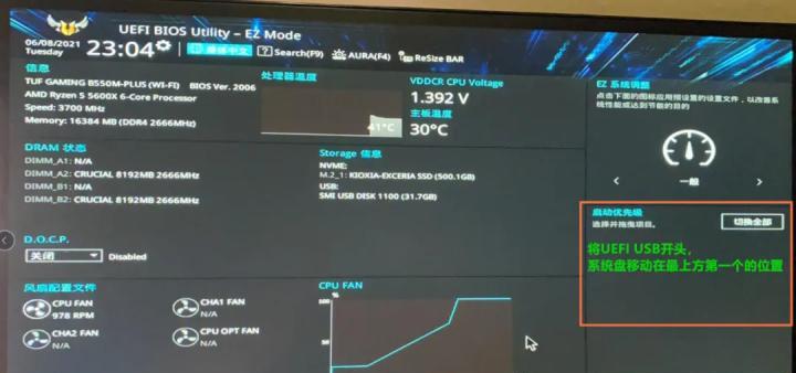 制作完成后,重启电脑并按照提示进入BIOS设置界面。