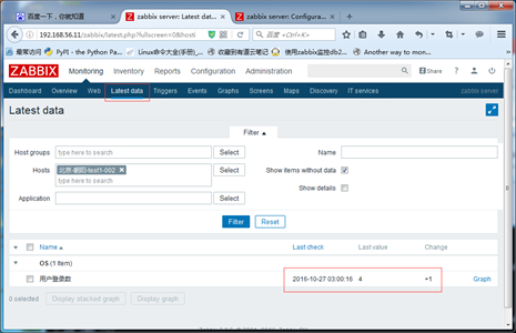 [root@muban ~]# cat f.txt 192.168.56.100 login.users 12 192.168.56.100 login.users1 13 192.168.56.100 login.users2 14 192.168.56.100 login.users3 15 测试 zabbix_sender -z 192.168.56.11 -i f.txt