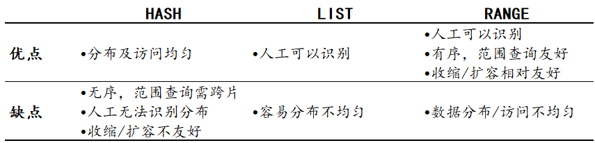 数据特征:表规模表规模是是否使用分片的关键因素之一。一旦表做了分片后,势必会造成一定的“功能退化”,如能采取其他方式缩小表的大小,尽量优先其他方式。可通过表的全生命周期规划,如常规的数据归档、压缩、转储、清理策略,减少数据量;或者利用数据库内置的如表分区、垂直分表等策略有效减小表的大小。
