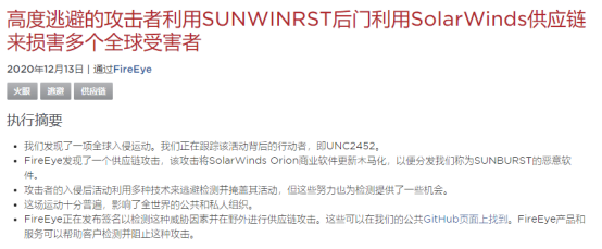 通过这种方式,黑客“隔山打牛”完成了对Orion客户——美国五角大楼和国土安全部、能源部、财政部、微软、Fireeye和其他组织的攻击。