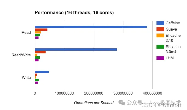 对于本地缓存的技术选型,推荐采用 Caffeine,性能上毫无疑问,遥遥领先。