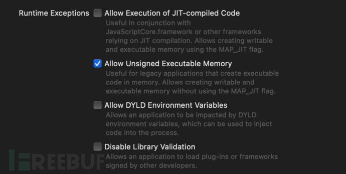 由于macOS要确保每一页可执行内存都有签名,这也就意味着我们需要一个com.apple.security.cs.allow-unsigned-executable-memory的权限(com.apple.security.cs.disable-executable-page-protection也适用)来运行我们的代码。