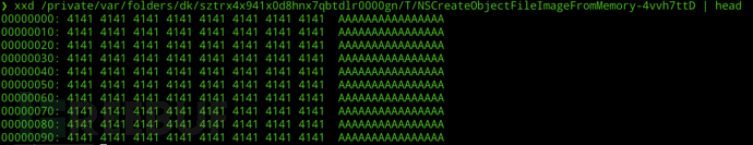 所以,最后一个阶段让我感到很困惑......我们使用了NSLinkModule,它生成了一个临时文件,并且用垃圾字符对它进行了填充。如果我们忽略这一点,而只是使用操作系统中的任意一个库来调用dlopen呢?这样应该就可以避免我们向磁盘中写入任何文件。