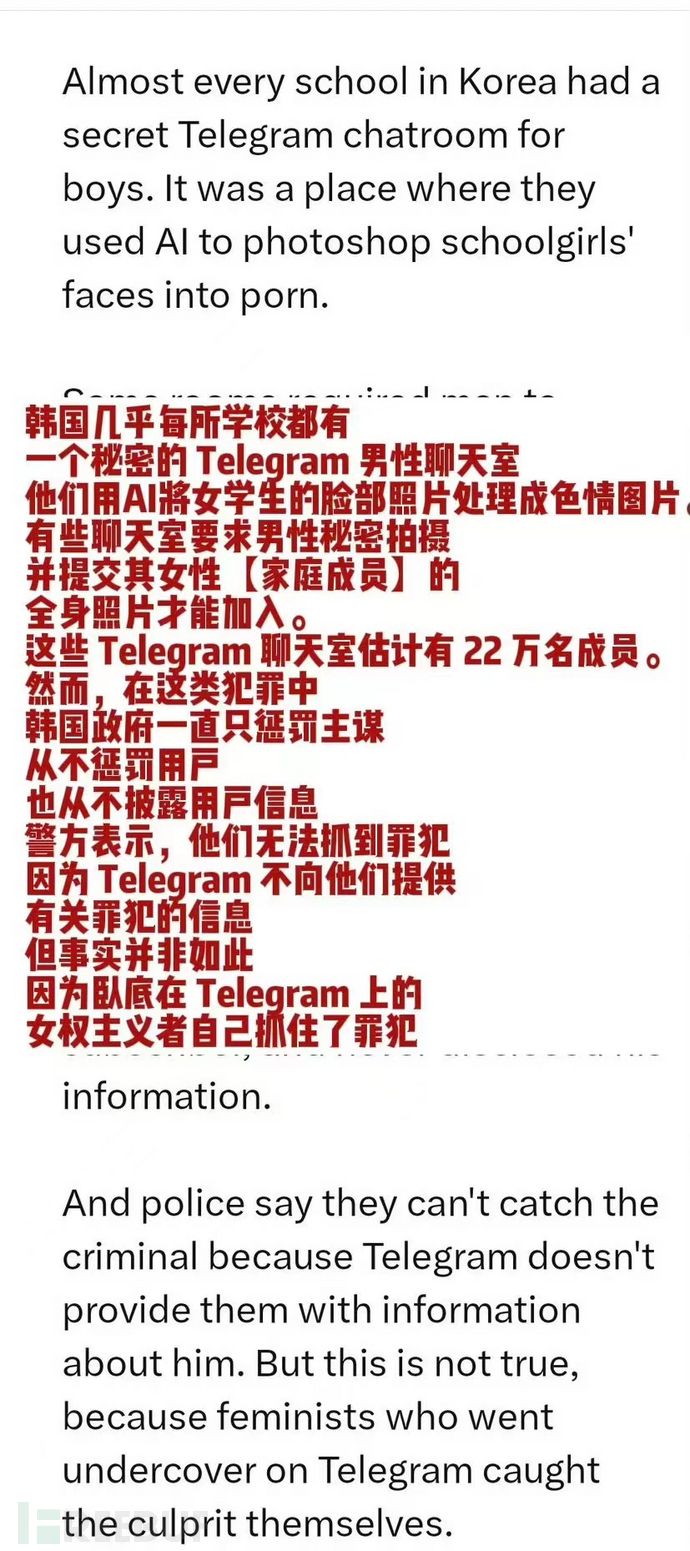 并且据该位韩国女网友表示:该事件的邪恶加害者,目前是韩国N号暂时关闭了telegram(可加密聊天视频软件),并预告说如果安静的房事话会重新建立deepfake房间......