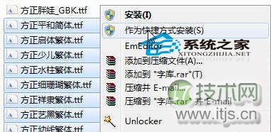 找到你的字库文件夹,选择(可以选择某个字体或者多个字体)后,单击鼠标右键,选择“作为快捷方式安装(S)”,就可以进行安装了!