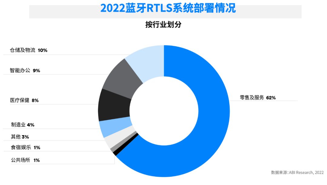 在蓝牙位置服务解决方案中,资产追踪(RTLS)和定位标签是推动持续增长的主要动力。包括医疗在内的商业RTLS系统在今年的设备出货量中占比最大。