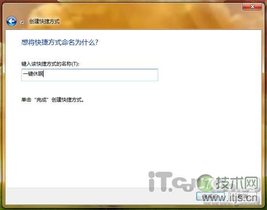 第三步:点击下一步,填写快捷方式名称,这里小编填写“一键休眠”方便辨认。