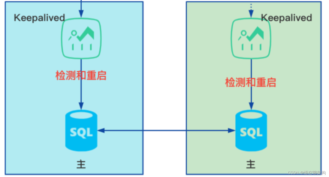 ① 我第一个想法就是,不是有 Keepalived 来保证高可用么,即使 MySQL 挂了,也可以通过 Keepalived 来自动重启才对。即使一台重启不起来,还有另外一台可以用的吧?