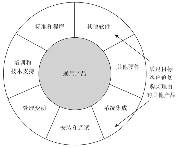 后者是我们为了成功向客户推销产品所做出的承诺,至于是否兑现,合同上并无要求,但如果要维护良好的客户关系,我们就必须兑现承诺。在B2B市场,如果你不能兑现承诺,后果将不堪设想。增加哪怕一个目标客户,都会对整体产品提出很多新的要求。为了兑现对客户的营销承诺,你要交付的产品和服务就必须随之改变,所以开发每一个市场机会都需要投入真金白银的成本。所以先聚焦细分市场,在特定的目标细分市场内加速形成整体产品基础设施,以满足特定细分市场客户的迫切购买理由。