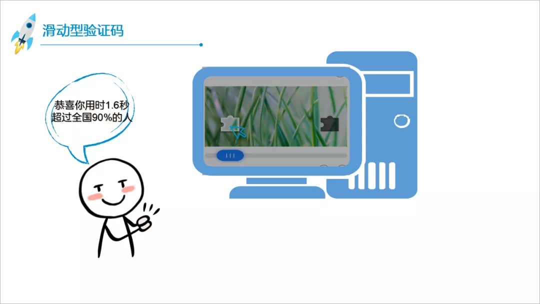 这种验证码的用户体验较好,虽然被计算机技术突破的成功率也有60%以上,但是计算机技术模拟人类行为的成本较大,得不偿失。