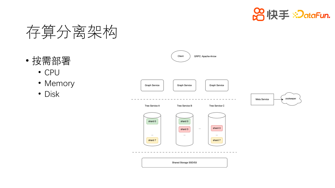 快手当前的架构主要是分为 Graph Service 层、Tree Service 层和 Storage 层。