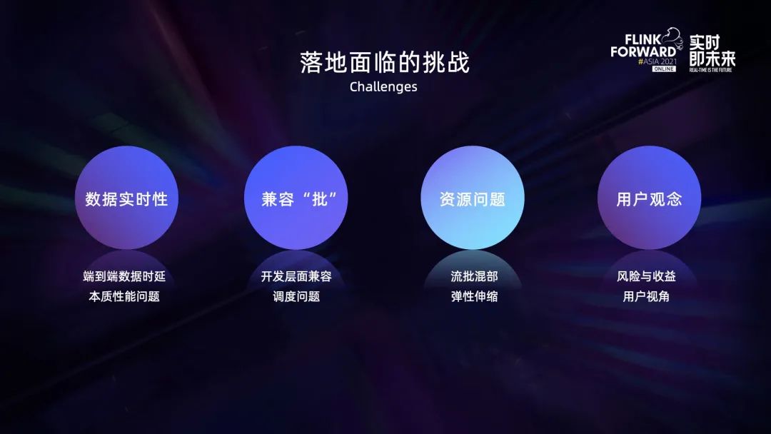 在流批一体技术落地的过程中,面临的挑战可以总结为以下 4 个方面: