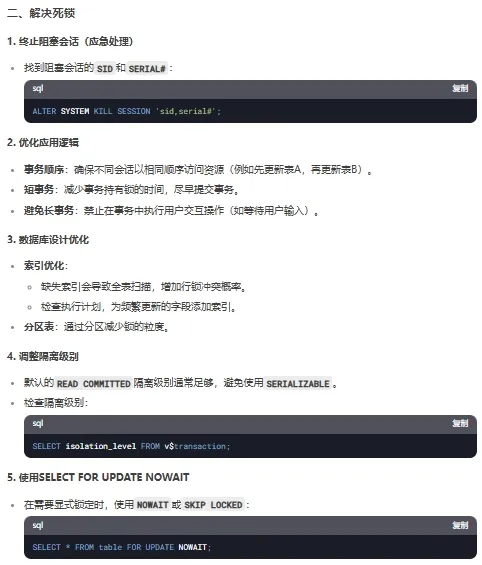 通知上游系统把文件数据按照 user_id 进行排序;后期优化,相同 user_id 的数据只保留一条日期最新的就行了。DeepSeek 也给出的详细的解决死锁的方法,见下图: