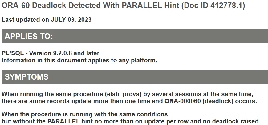 最近在生产上遇到一个死锁问题,问题Oracle 抛出了 ORA-000060 异常。帮解