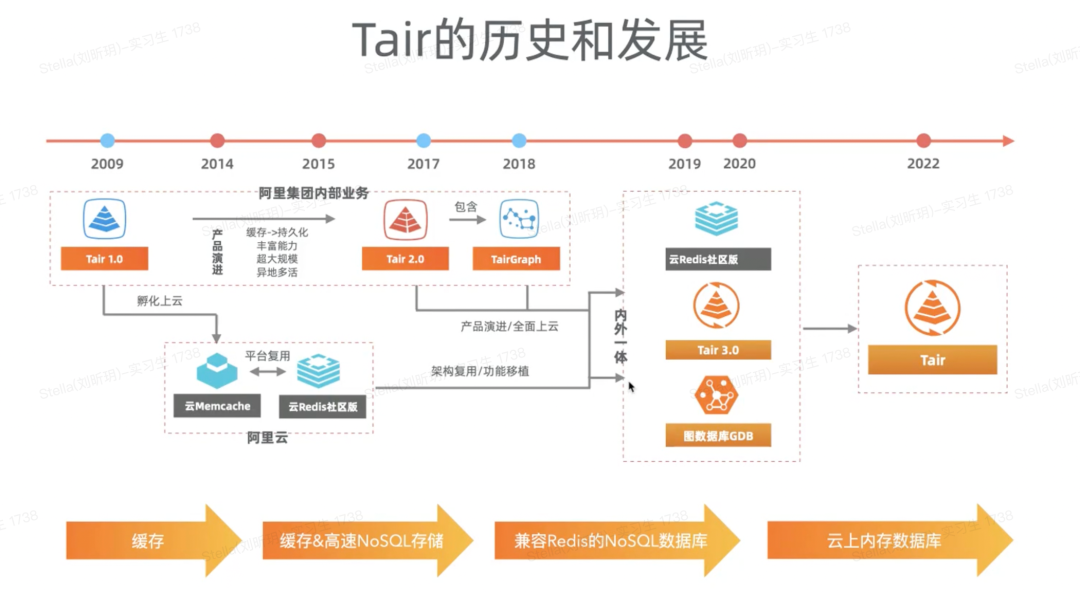 接下来,我们正式进入Tair 相关的数据r实交流。整体包括Tair的内存发展历程、重大节点、技术难点以及相关实践展开。我们先来看看“Tair的历史和发展”,可以看下面这张图: