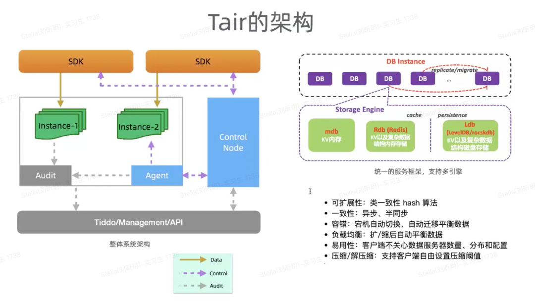 接下来我们看看Tair引擎的高可用,前面我们讲了社区版的 Redis ,它的探活跟数据操作其实是在一个工作线程里面,因为数据操作慢了之后,会产生一些误判,所以我们把所有的管控请求放到独立的处理系统里面;就把这些 HA 把这些访问、统计信息等完全隔离,包括用户的数据访问跟系统的高可用统计都是隔离开的,确保质量更好。