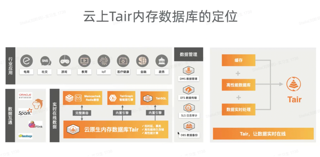 阿里云的内存数据库Tair经过多年演进,已经完整兼容了Memcache&Redis,还有一部分是我们的图引擎,兼容了开源的 Gremlin和Neo4j的 Cypher。我们还有一个支持标准 SQL 的引擎,这个我们用来作为高性能的实时数据处理。所以,我们今天 Tair 内存数据库的定义是一个缓存,加上高性能数据库及数据实时处理的定义。