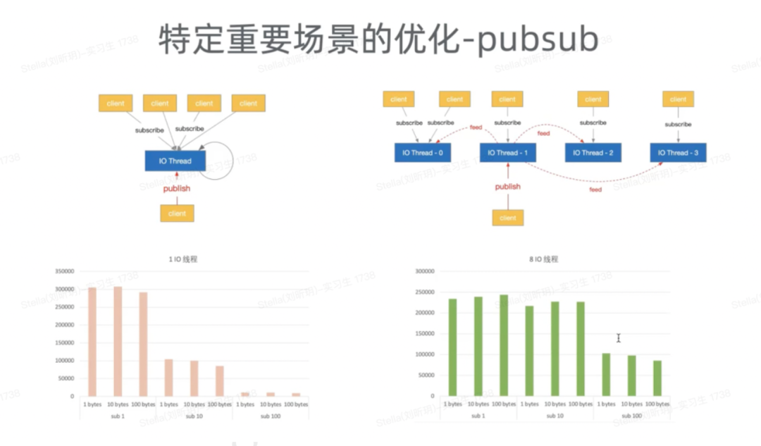 Pubsub相当于是 Tair 与 Redis 里面做消息处理用的。原来的单线程,如果是挂载的客户端多的话,其实推送起来会比较慢。它的单线处理,相当于在Tair 里面把它作为一个多线程处理,所以这是一个并发的处理操作。
