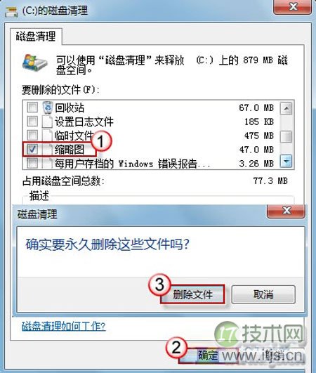 3.现在您需要做的,仅仅是在“要删除的文件”一栏中,勾选“缩略图”项。然后,确认删除。