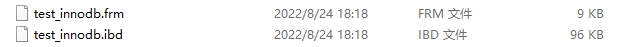 在InnoDB中,数据和索引文件是合起来储存的,注意下图中没有了.MYI结尾的文件,只有一个.ibd结尾的文件。