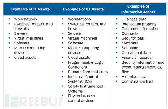 OT资产:OT资产是指对于服务交付或生产活动所必需的资产。大多数现代控制系统包括传统上被称为IT的资产,例如使用标准操作系统、数据库服务器或域控制器的工作站,也包括工业控制系统,摄像头,门禁等。
