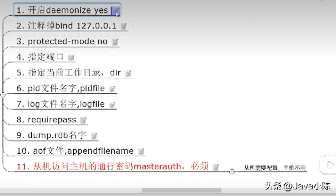 一个master可以有多个slave每个slave只能有一个master每个slave也可以有自己的多个slave数据流是单向的,从master到slave主从复制的缺点:由于所有的写操作都是先在Master上操作,然后同步更新到Slave上,所以从Master同步到Slave服务器有一定的延迟,当系统很繁忙的时候,延迟问题会更加严重,Slave机器数量的增加也会使这个问题更加严重。