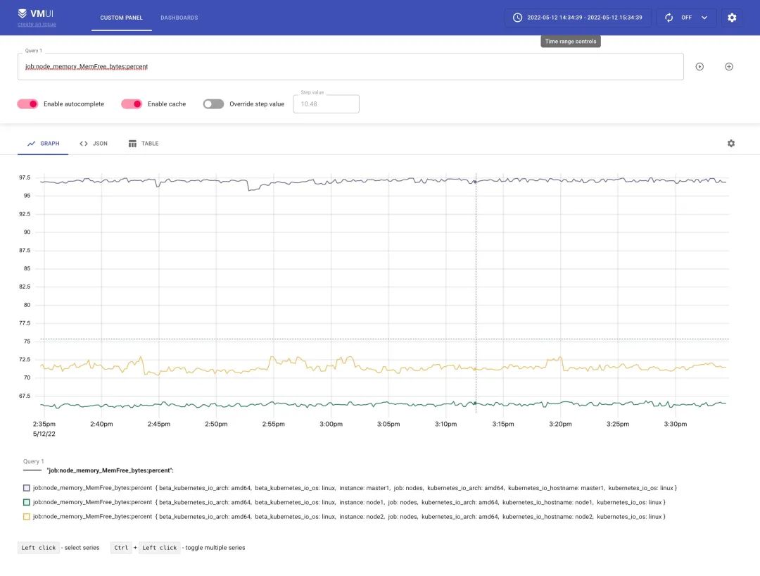 同样的上面我们添加的记录规则会通过 remote write 传递给 vminsert 保留下来,所以我们也可以通过 vmselect 查询到。