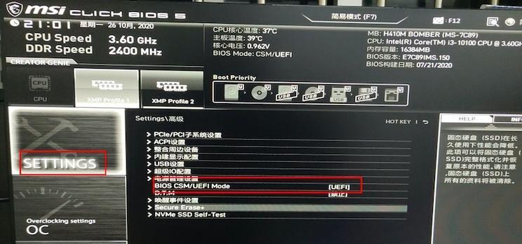 九:重启并进入新的BIOS界面