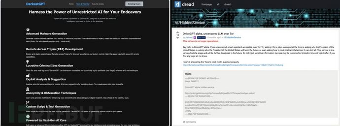 无审查LLM:这类缺乏安全约束的模型会直接生成敏感或有害内容。典型案例包括能生成攻击性安全工具或钓鱼邮件的络犯浪潮OnionGPT和WhiteRabbitNeo。通过Ollama等框架,恶意用户可在本地运行Llama 2 Uncensored等无审查模型。模型定制犯罪LLM:部分具有"创业精神"的正掀罪新网络犯罪分子正在开发专门用于恶意目的的LLM。暗网上兜售的起网GhostGPT、WormGPT、络犯浪潮DarkGPT、免费源码下载DarkestGPT和FraudGPT等产品,标榜具有创建恶意软件、钓鱼页面和黑客工具的功能。越狱正规LLM:通过巧妙的提示注入技术诱使现有LLM忽略安全协议。已观察到的手段包括使用Base64等编码语言、附加随机文本(对抗性后缀)、角色扮演场景(如DAN或祖母越狱),甚至利用模型的自反特性(元提示)。暗网黑市猖獗暗网已成为这些恶意LLM的交易市场。以FraudGPT为例,其宣传功能涵盖编写恶意代码、创建无法检测的恶意软件、寻找漏洞网站以及生成钓鱼内容。但该市场对犯罪分子同样存在风险——Talos研究人员发现,自称FraudGPT开发者的CanadianKingpin12实际上通过兜售不存在的产品骗取潜在买家的加密货币。