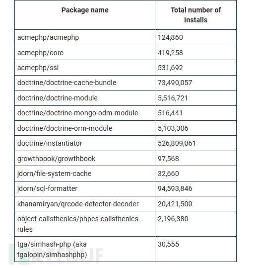 至少劫持了 14 个 Packagist 包Packagist 是黑客一个 PHP 软件包的集中式存储库,为开发人员提供了一个快捷的攻击方式来分享和安装 PHP 软件包,开发人员可以将自己的包数 PHP 软件包上传到 Packagist,并通过 Composer 进行安装和依赖管理。亿软