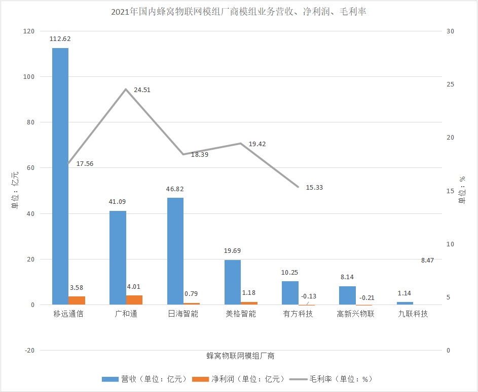 蜂窝模组厂商营收、净利润及毛利率情况(来源:物联传媒整理)