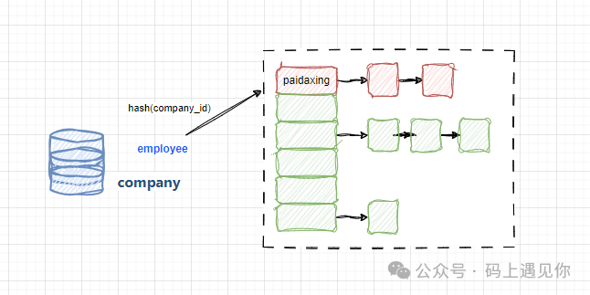 在探测阶段,当从 company 表中取出记录后,会到哈希表中查询匹配的数据,然后进行聚合操作。