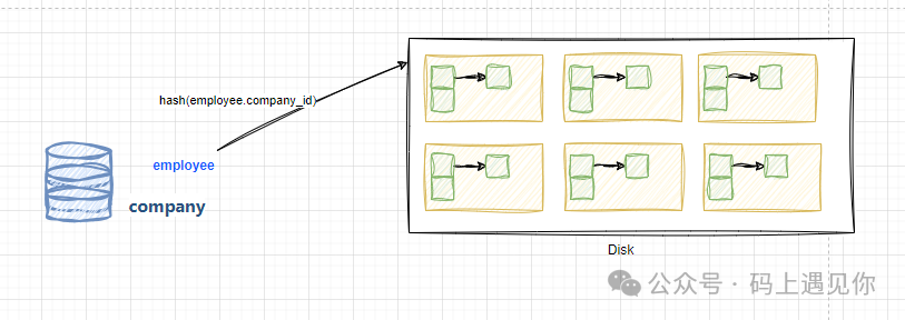 在这种算法中,为了避免一个大型哈希表无法完全存储在内存中,可以采用分表的方法来解决。即通过哈希算法将驱动表分割成多个片段,并将临时分片写入磁盘。
