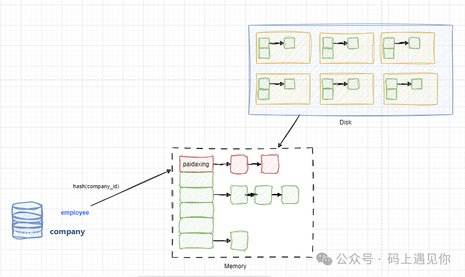 需要注意的是,上述提到的哈希表是存在于内存中的。然而,内存是有限的(受到 join_buffer_size 的限制)。那么,如果内存无法容纳驱动表的数据怎么处理呢?那就不得不说一说基于磁盘的Hash Join了。