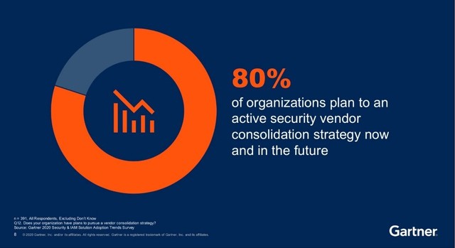 安全产品的整合势在必行据Gartner预测,大多数企业和机构已经认识到供应商整合是降低成本和提高安全性的有效途径。80%的企业和机构对供应商整合感兴趣,准备采用整合安全厂商的策略,减少安全厂商产品的使用数量。
