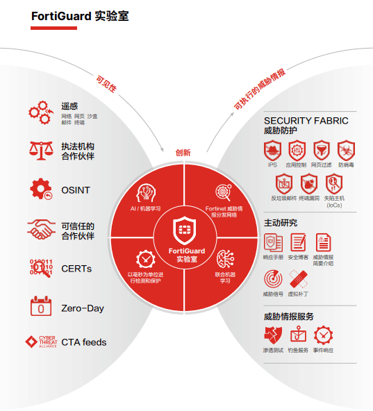 Fortinet利用全球广泛分布的Fortinet Security Fabric 安全架构对安全数据进行收集、分析与整理,借助于FortiGuard实验室,为全球企业客户提供及时、精确、丰富的威胁情报,并通过与第三方合作伙伴的集成,更好的防御已知和未知的威胁攻击。此外,Fortinet还通过实现和支持广泛开放的技术合作伙伴生态系统来进一步消除技术和供应商孤岛。