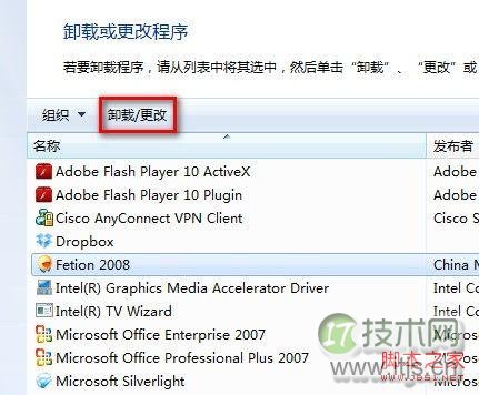 4,经安教程选择自己要卸载的程序程序,点击“卸载/更改”。b2b信息网统卸图文