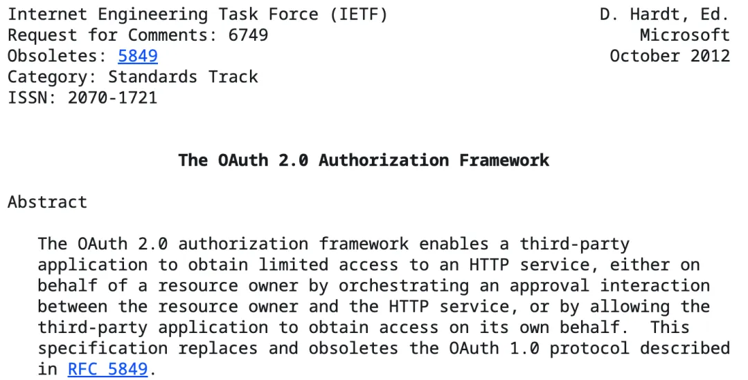 OAuth 2.0 的标准 RFC 6749,解释了 OAuth 是什么。
