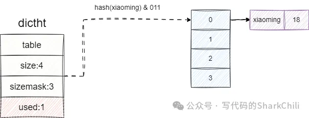 复制HSET student xiaoming 181.redis完成命令解析后,字典设定位到student这个key对应的计实字段空间的字典,找到当前正在使用的聊聊哈希表,按照如下步骤完成键值对存储:
