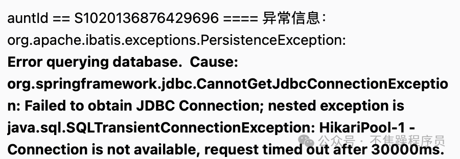 于是又赶紧看了日志,出现了大量拿不到MySQL Connection异常。