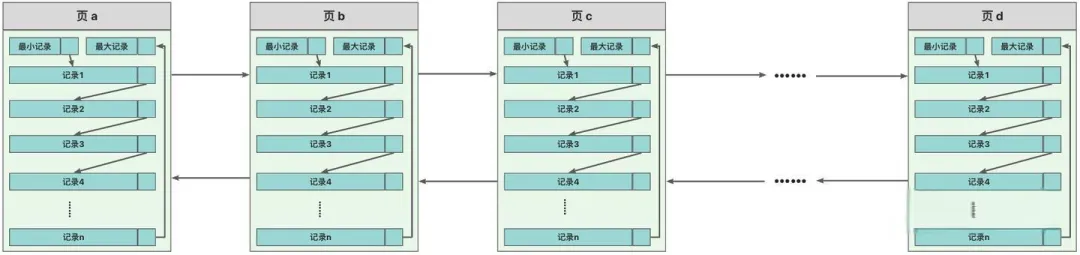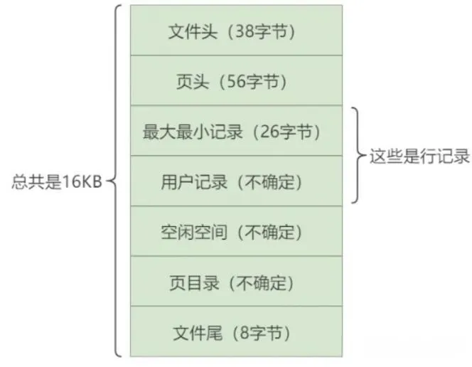 虽然记录是按照行来存储的,但考虑到效率,数据库的读写并不以行为单位,而是以页为单位,一个页中可以存储多个行记录。页的大小默认为16KB,也就是数据库一次最少从磁盘中读取16KB的内容到内存,一次最少把内存中16KB的内容刷新到磁盘。